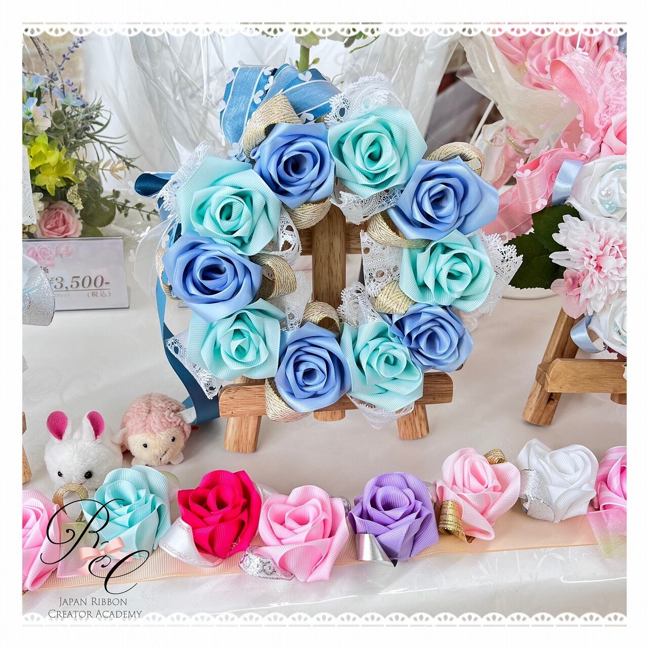 こちらはおリボンで表現する枯れない薔薇のリースになります