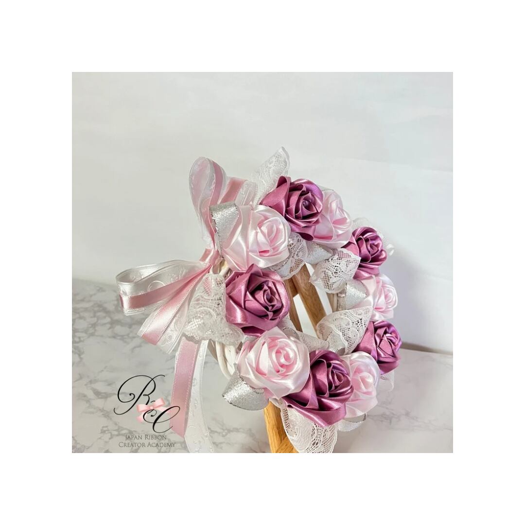 こちらはおリボンで表現する枯れない薔薇のリースになります